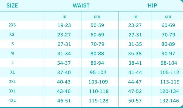 Period panty size guide